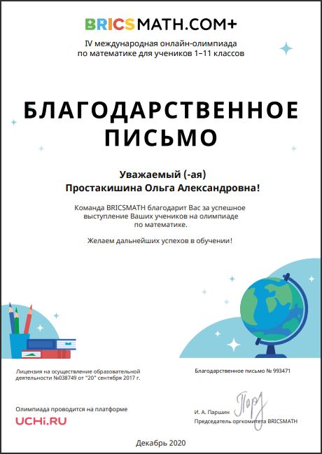 «Dricsmath.com+» IV международная онлайн-олимпиада по математике для учеников 1-11 классов