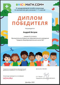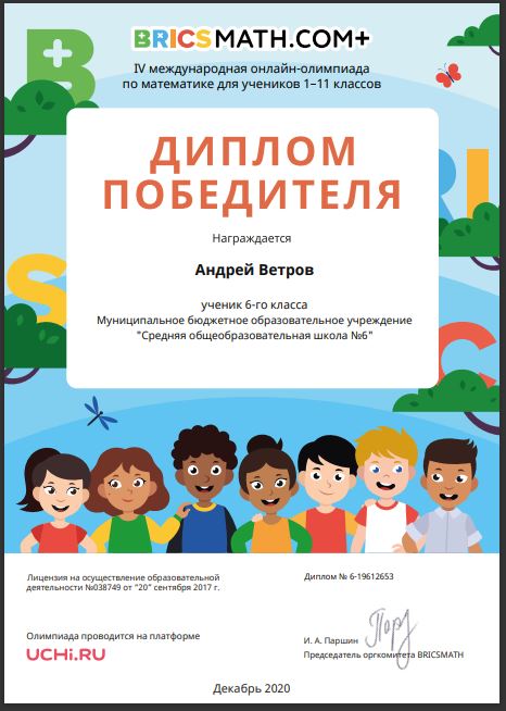 Результат участия: Ветров Андрей , 6 класс, диплом победителя