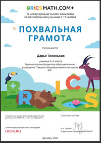 Результат участия: Тихоньких Дарья , 5 класс, похвальная грамота.