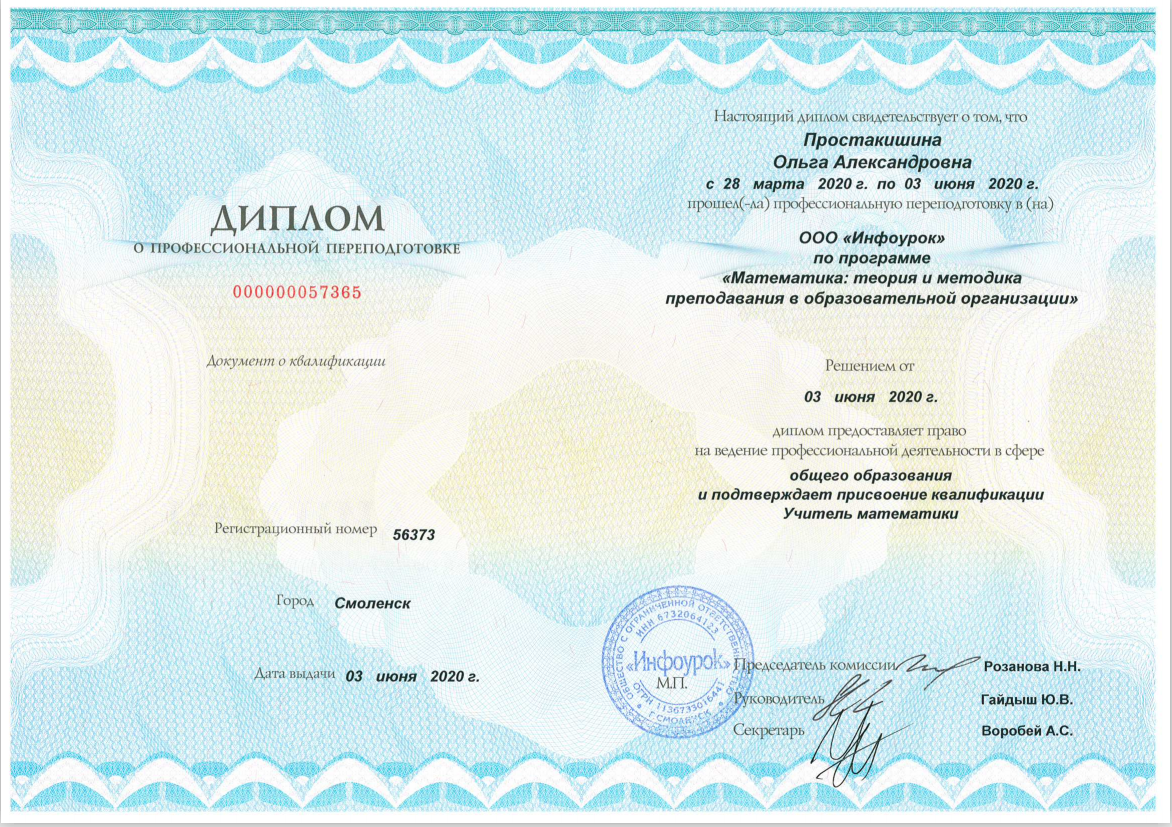 ООО "Инфоурок" Профессиональная переподготовка по программе «Математика:теория и методика преподавания в образовательной организации»