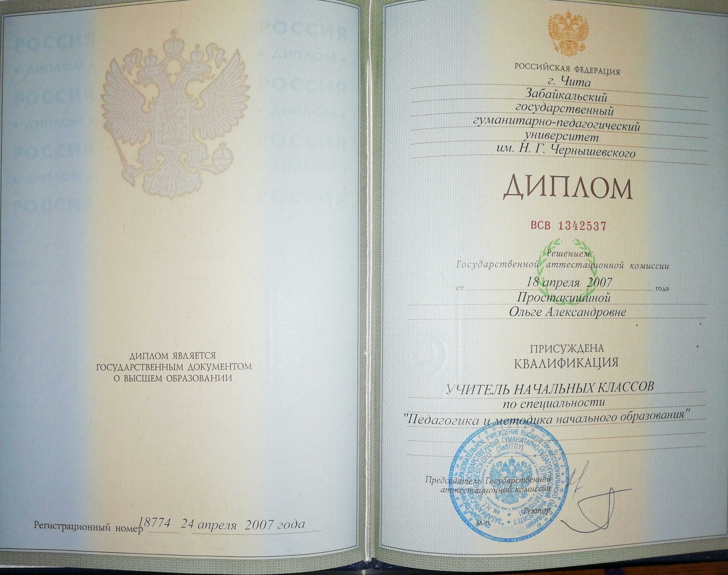Специальность: преподавание в начальных классов