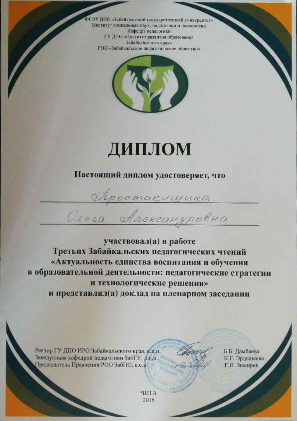 Место проведения: ГУ ДПО "Институт развития образования Забайкальского края"