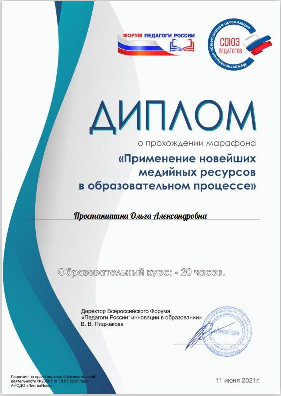 Всероссийский Форум "Педагоги России". Марафон "Применение новейших медийных ресурсов в образовательном процессе"