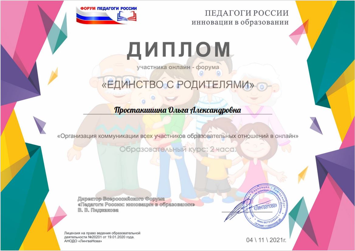 Всероссийский форум "Педагоги России" Онлайн форум "Единство с родителями".