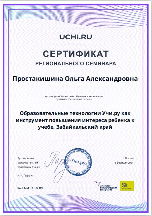 Место проведения: образовательная платформа Учи.ру